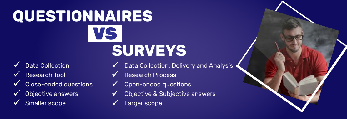 A survey, on the other hand, is the entire process of collecting, delivering, and analyzing the collected data (which may be in the form of a questionnaire) for market research. The questions asked in a survey can be close-ended or open-ended, as well as subjective, according to the opinion of the respondent.